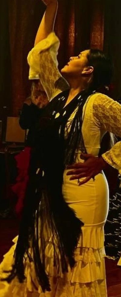 As a dancer and Flamenco artist, Irene was trained in Ballet by Nina Novak, and in Classical Spanish and Flamenco by Jose Serrano, "Pepe." She was privileged to study at the prestigious original Amor de Dios studio in Madrid. Once "baptized" by Maria Magdalena, her mentor in Spain, with the artistic name "La Chata," Irene performed in Ferias in Andalusia, and in tablaos in Spain and abroad.